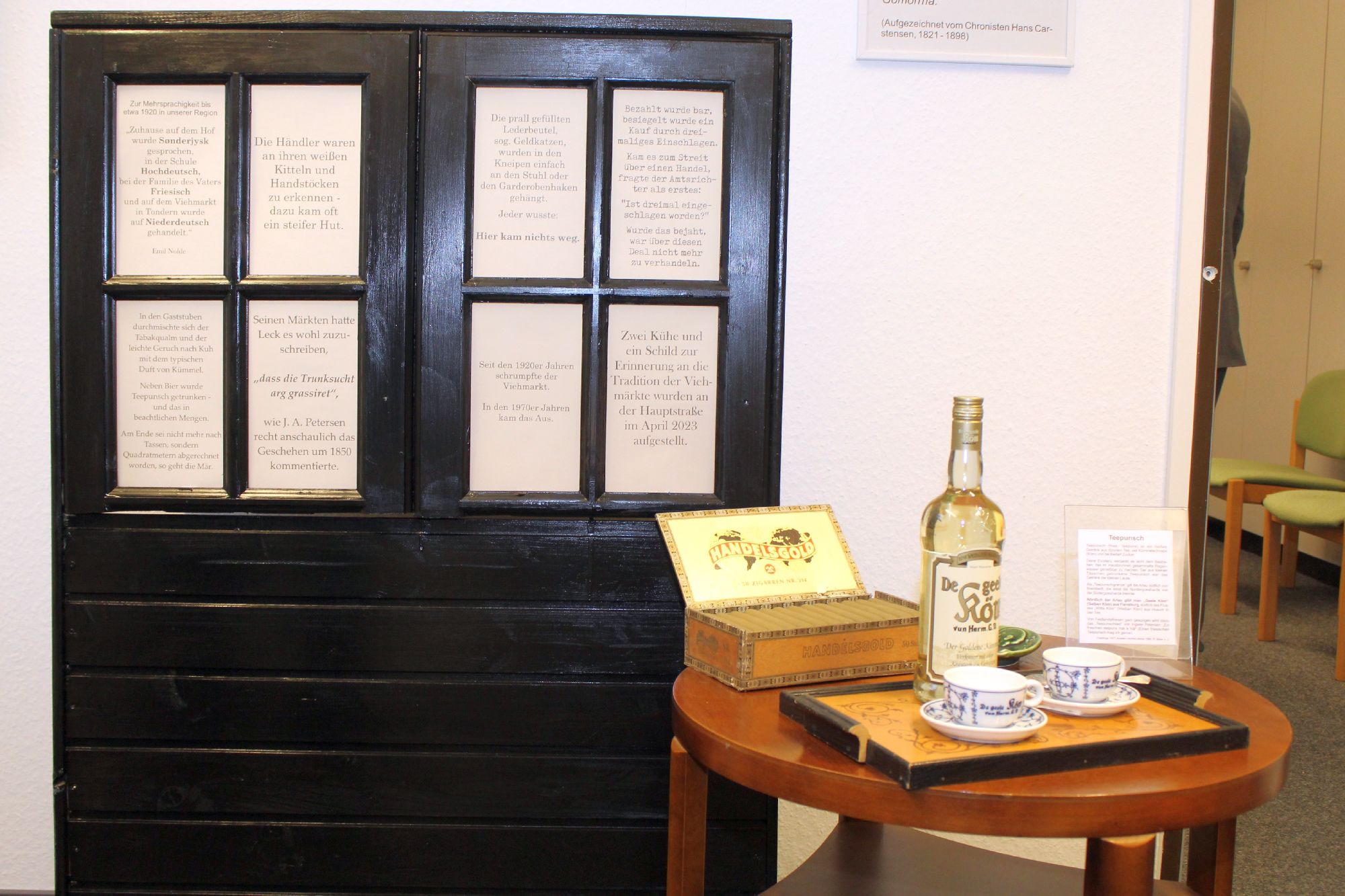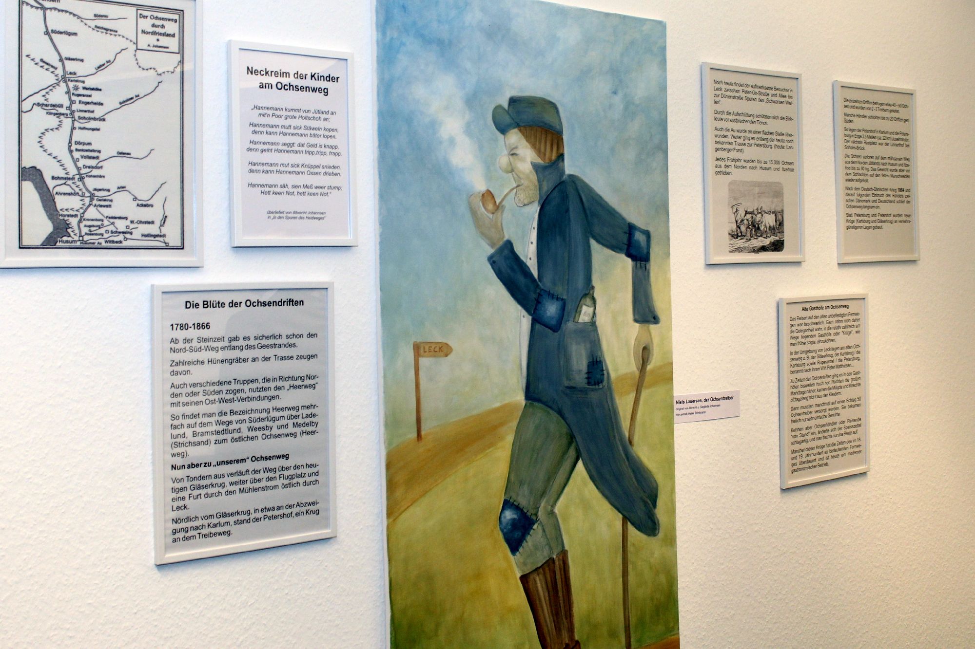 Einige aktive Mitglieder der Geschichtswerkstatt hatten dort Wissenswertes zur Lecker Geschichte beigetragen. In zwei Räumen erfahren interessierte Besucherinnen und Besucher dort, welche Funde schon aus der Steinzeit belegen, dass unsere Gegend besiedelt war, wer auf der Burg Leck-Huus einst lebte und wie man überhaupt von ihrer Existenz im 13. Jahrhundert erfahren hat. Auch das Viehtreiben auf dem Ochsenweg hat unseren Ort geprägt, bis zur Verleihung der Marktrechte im Jahr 1548.